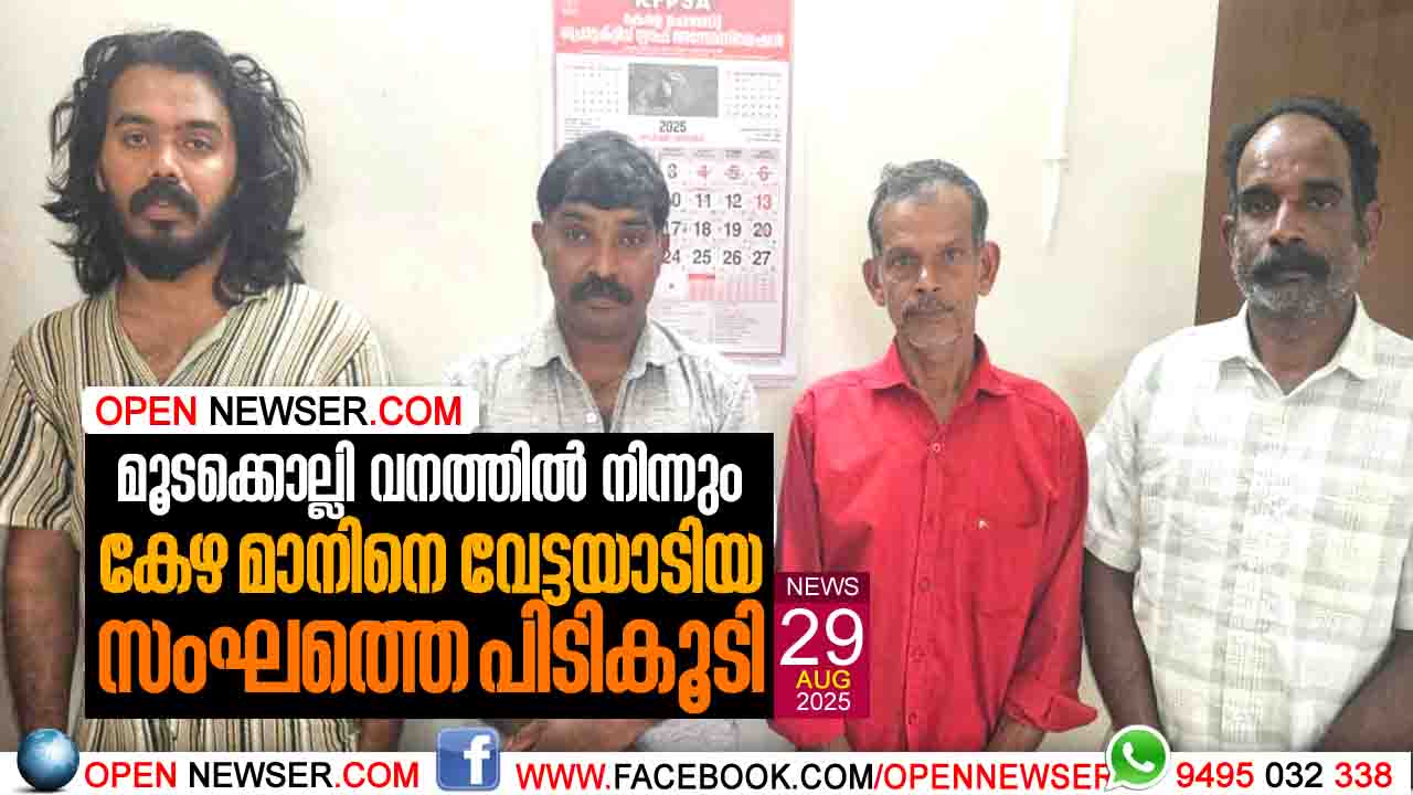 മൂടക്കൊല്ലി വനത്തില് നിന്നും കേഴ മാനിനെ വേട്ടയാടിയ സംഘത്തെ പിടികൂടി