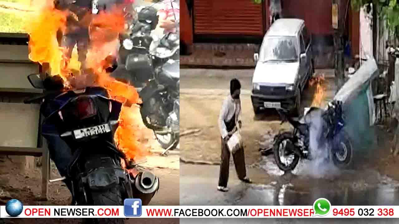 അമ്പലവയലില് ഓടുന്നതിനിടെ ബൈക്ക് കത്തിനശിച്ചു; യാത്രക്കാര് അത്ഭുതകരമായി രക്ഷപ്പെട്ടു