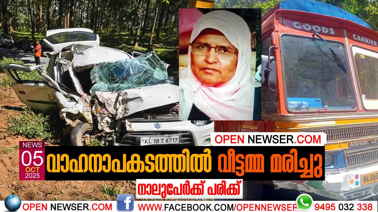 വാഹനാപകടത്തില് വീട്ടമ്മ മരിച്ചു; നാലുപേര്ക്ക് പരിക്ക്