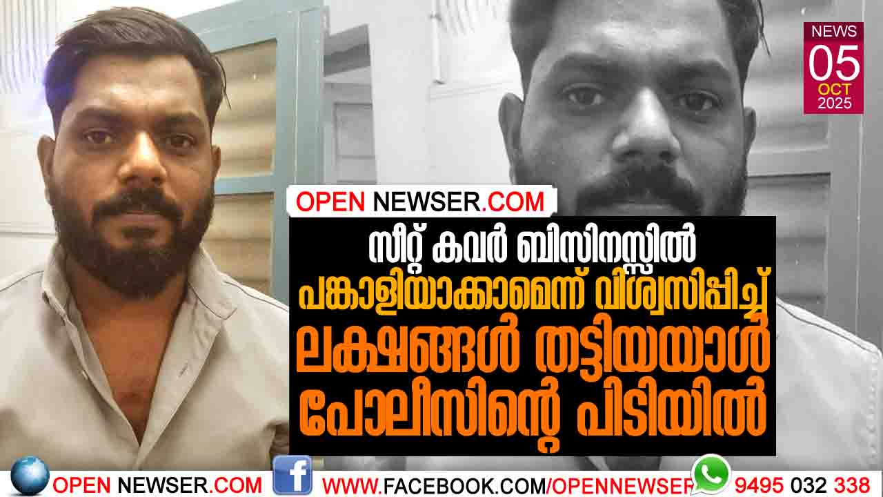 സീറ്റ് കവര് ബിസിനസ്സില് പങ്കാളിയാക്കാമെന്ന് വിശ്വസിപ്പിച്ച് ലക്ഷങ്ങള് തട്ടിയയാള് പോലീസിന്റെ പിടിയില്