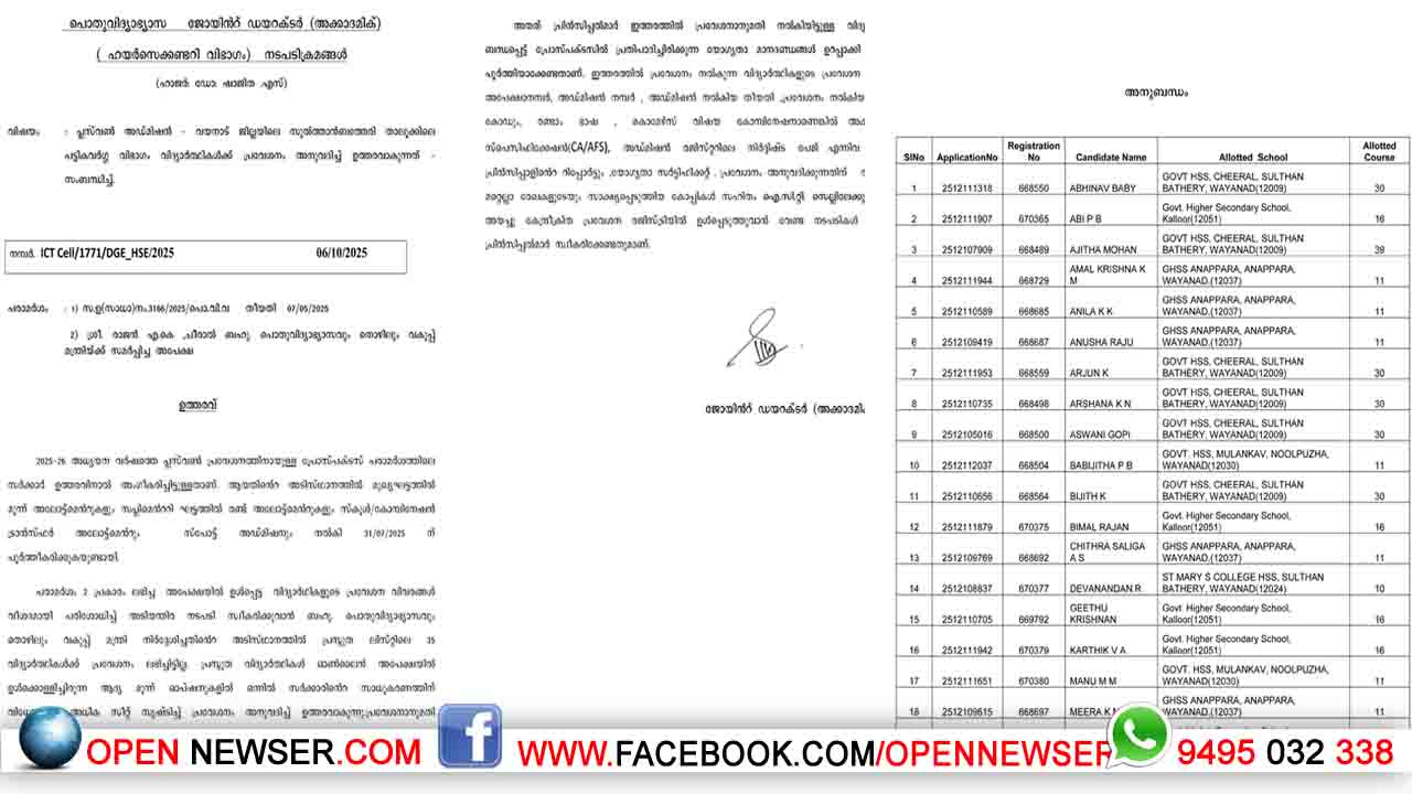 ചീരാല് ഗവ എച്ച്.എസ്.എസ്, കല്ലൂര് ജി.എച്ച്.എസ്.എസ്, ആനപ്പാറ ജി.എച്ച്.എസ്.എസ്, നൂല്പ്പുഴ മൂലങ്കാവ് ജി.എച്ച്.എസ്.എസ്, സുല്ത്താന് ബത്തേരി സെന്റ് മേരീസ് കോളേജ് എച്ച്.എസ്.എസ്, സര്വ്വജന വി.എച്ച്.എസ്.എസ്, അമ്പലവയല് ജി.വി.എച്ച്.എസ്.എസ് എന്നീ സ്കൂളുകളിലാണ് അധിക സീറ്റുകള് സര്ക്കാര് അനുവദിച്ചത്. സ്കൂള് പ്രിന്സിപ്പല്മാര് കുട്ടികളെ ബന്ധപ്പെട്ട് യോഗ്യതാ മാനദണ്ഡങ്ങള് ഉറപ്പാക്കി പ്രവേശന നടപടികള് പൂര്ത്തീകരിച്ച് പ്രവേശനം കേന്ദ്രീകൃത രജിസ്ട്രിയില് ഉള്പ്പെടുത്താന് ഹയര്സെക്കന്ഡറി അക്കാദമിക വിഭാഗം ജോയിന്റ് ഡയറക്ടര് പുറത്തിറക്കിയ ഉത്തരവില് പറയുന്നു.