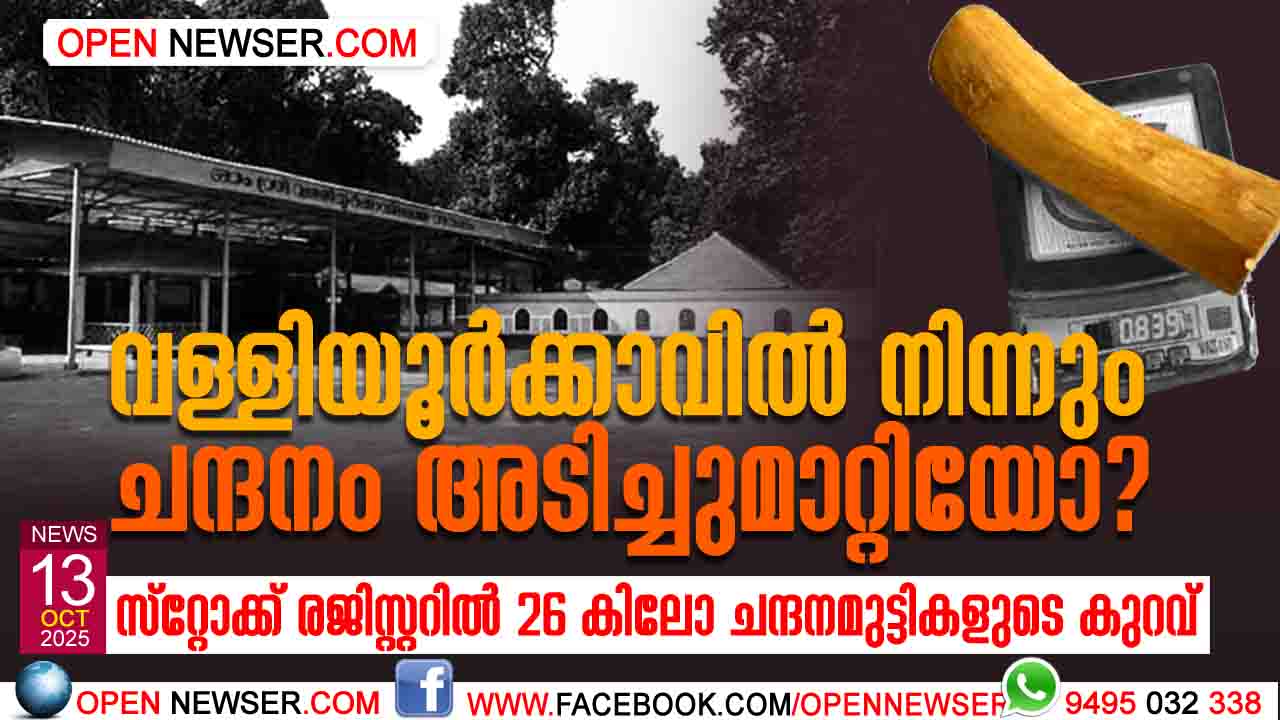വള്ളിയൂര്ക്കാവില് നിന്നും ചന്ദനം അടിച്ചുമാറ്റിയോ ? സ്റ്റോക്ക് രജിസ്റ്ററില് 26 കിലോ ചന്ദനമുട്ടികളുടെ കുറവ്