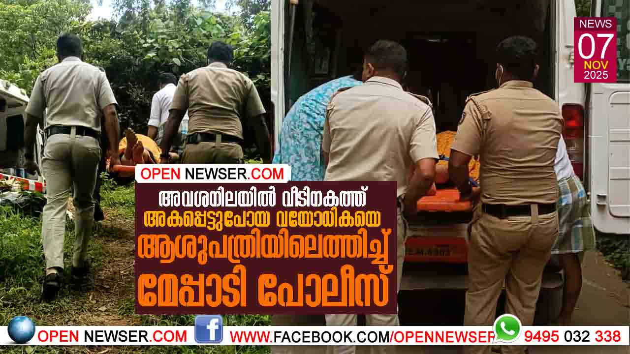 അവശനിലയില് വീടിനകത്ത് അകപ്പെട്ടുപോയ വയോധികയെ ആശുപത്രിയിലെത്തിച്ച് മേപ്പാടി പോലീസ്