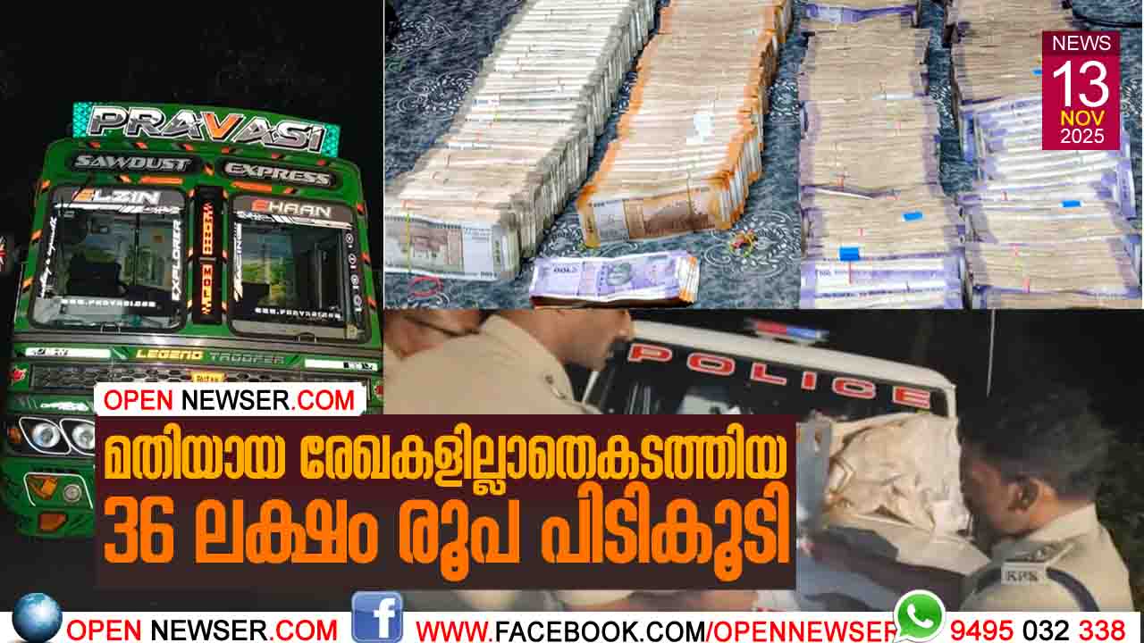 മതിയായ രേഖകളില്ലാതെ കടത്തിയ 36 ലക്ഷം രൂപ പിടികൂടി