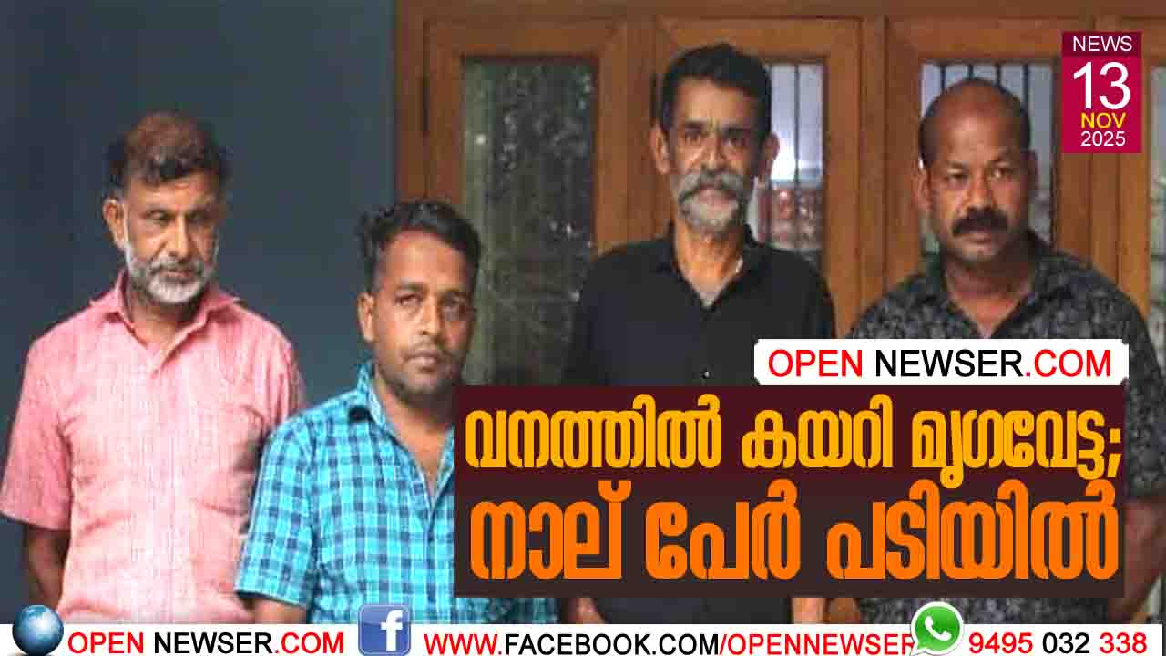 വനത്തില് കയറി മൃഗവേട്ട; നാല് പേര് പടിയില്