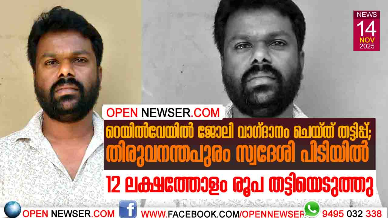 റെയില്വേയില് ജോലി വാഗ്ദാനം ചെയ്ത് തട്ടിപ്പ്; തിരുവനന്തപുരം സ്വദേശി പിടിയില്; 12 ലക്ഷത്തോളം രൂപ തട്ടിയെടുത്തു