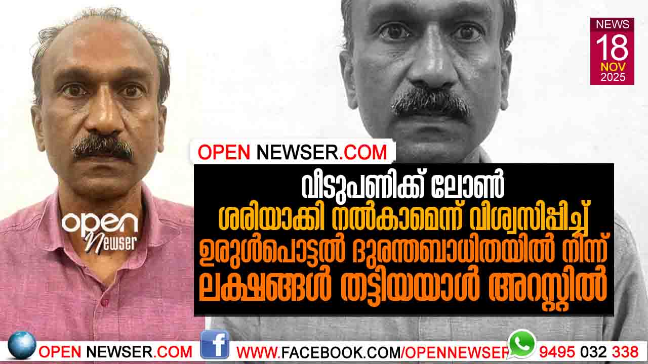 വീടുപണിക്ക് ലോണ് ശരിയാക്കി നല്കാമെന്ന് വിശ്വസിപ്പിച്ച് ഉരുള്പൊട്ടല് ദുരന്തബാധിതയില് നിന്ന് ലക്ഷങ്ങള് തട്ടിയയാള് അറസ്റ്റില്
