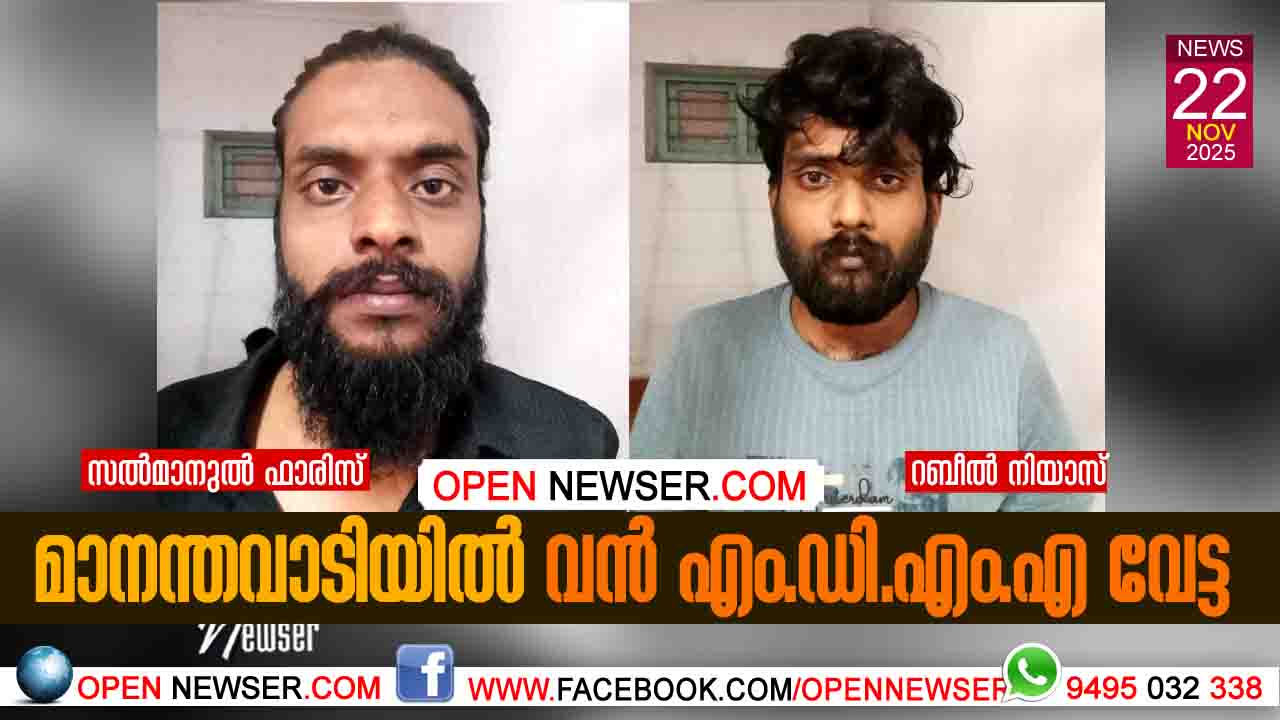 മാനന്തവാടി: ടൂറിസ്റ്റ് ബസില് കൊമേഴ്ഷ്യല് അളവില് മാരകമയക്കുമരുന്നായ എം.ഡി.എം.എ കടത്താനുള്ള യുവാക്കളുടെ ശ്രമം പൊളിച്ചടുക്കി വയനാട് പോലീസ്. ജില്ലാ പോലീസ് മേധാവി തപോഷ് ബസുമതാരി ഐ.പി.എസ്സിന് ലഭിച്ച രഹസ്യ വിവരത്തിന്റെ അടിസ്ഥാനത്തില് ജില്ലാ ലഹരി വിരുദ്ധ സേനയും, മാനന്തവാടി പോലീസും ഇന്ന് പുലര്ച്ചെ നടത്തിയ സംയുക്ത വാഹന പരിശോധനയിലാണ് വാണിജ്യാടിസ്ഥാനത്തില് കടത്തികൊണ്ടുവന്ന ലക്ഷങ്ങള് വിലമതിക്കുന്ന എംഡിഎംഎ പിടികൂടിയത്. 245 ഗ്രാം എം.ഡി.എം.എയുമായി മലപ്പുറം സ്വദേശികളായ ഏറനാട്, പറമ്പില്ത്തൊടി വീട്ടില് സല്മാനുല് ഫാരിസ്(28), മൊറയൂര്, ഉണ്ണിയേരിക്കുന്ന് വീട്ടില് റബീല് നിയാസ്(30) എന്നിവരെ പോലീസ് അറസ്റ്റ് ചെയ്തു.