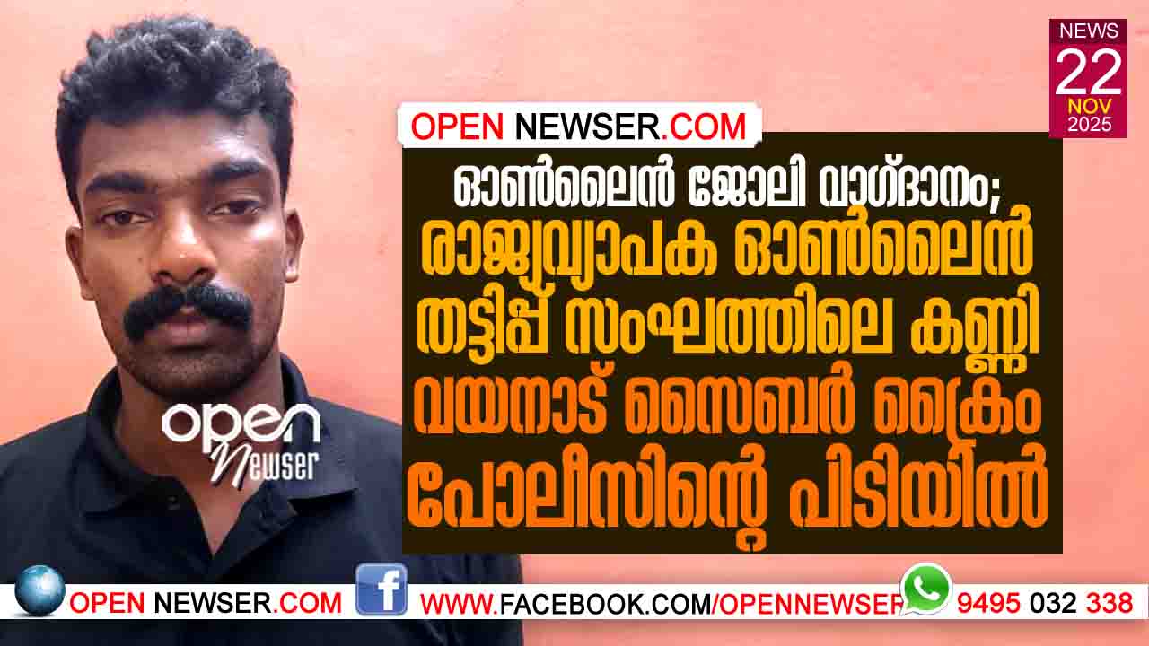 ഓണ്ലൈന് ജോലി വാഗ്ദാനം; രാജ്യവ്യാപക ഓണ്ലൈന് തട്ടിപ്പ് സംഘത്തിലെ കണ്ണി വയനാട് സൈബര് ക്രൈം പോലീസിന്റെ പിടിയില്
