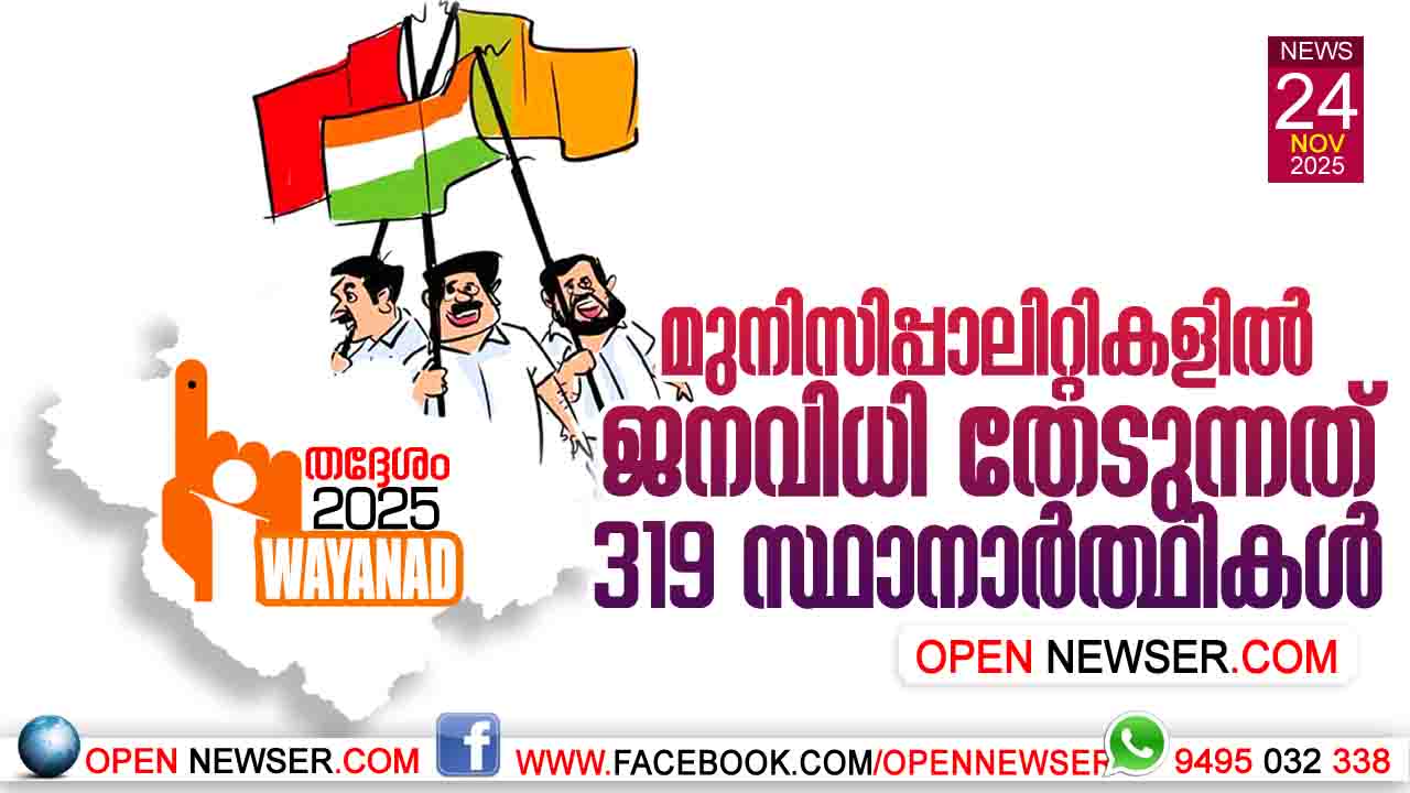 മുനിസിപ്പാലിറ്റികളില് ജനവിധി തേടുന്നത് 319 സ്ഥാനാര്ത്ഥികള്