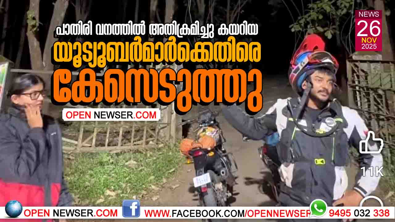 പാതിരി വനത്തില് അതിക്രമിച്ചു കയറിയ യൂട്യൂബര്മാര്ക്കെതിരെ കേസെടുത്തു.