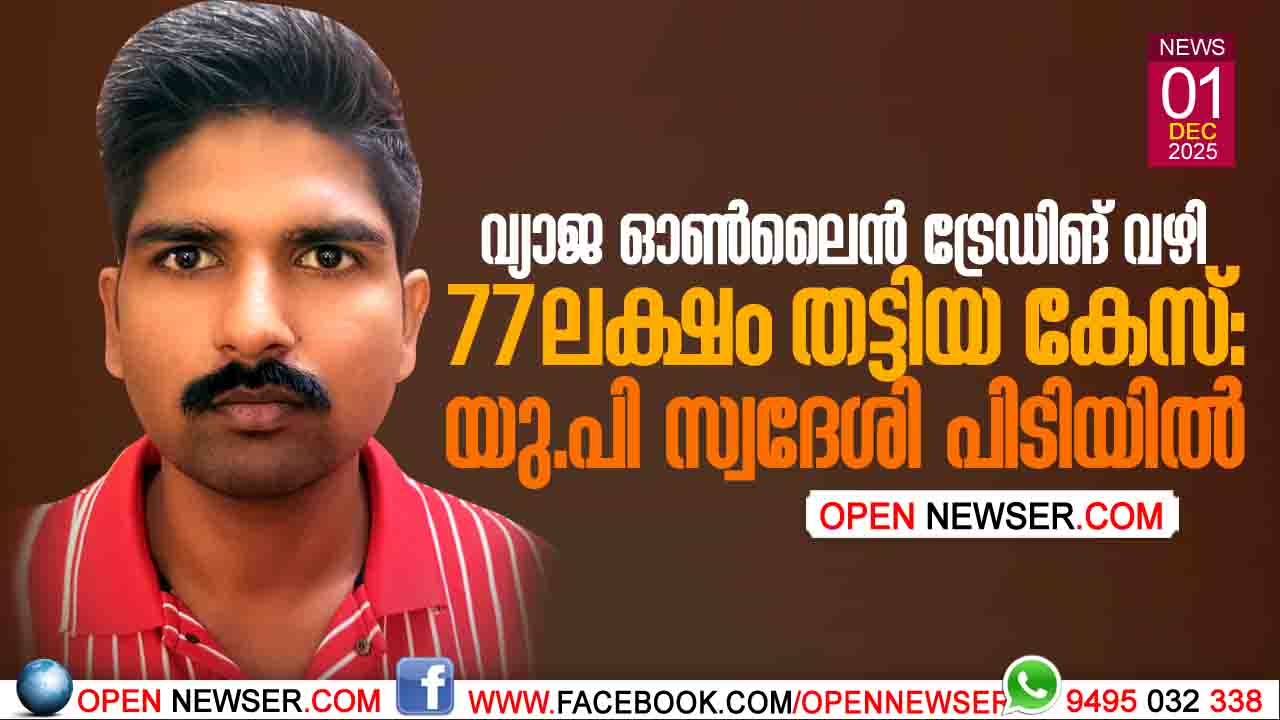 വ്യാജ ഓണ്ലൈന് ട്രേഡിങ് വഴി 77 ലക്ഷം തട്ടിയ കേസ്: യു.പി സ്വദേശി പിടിയില്