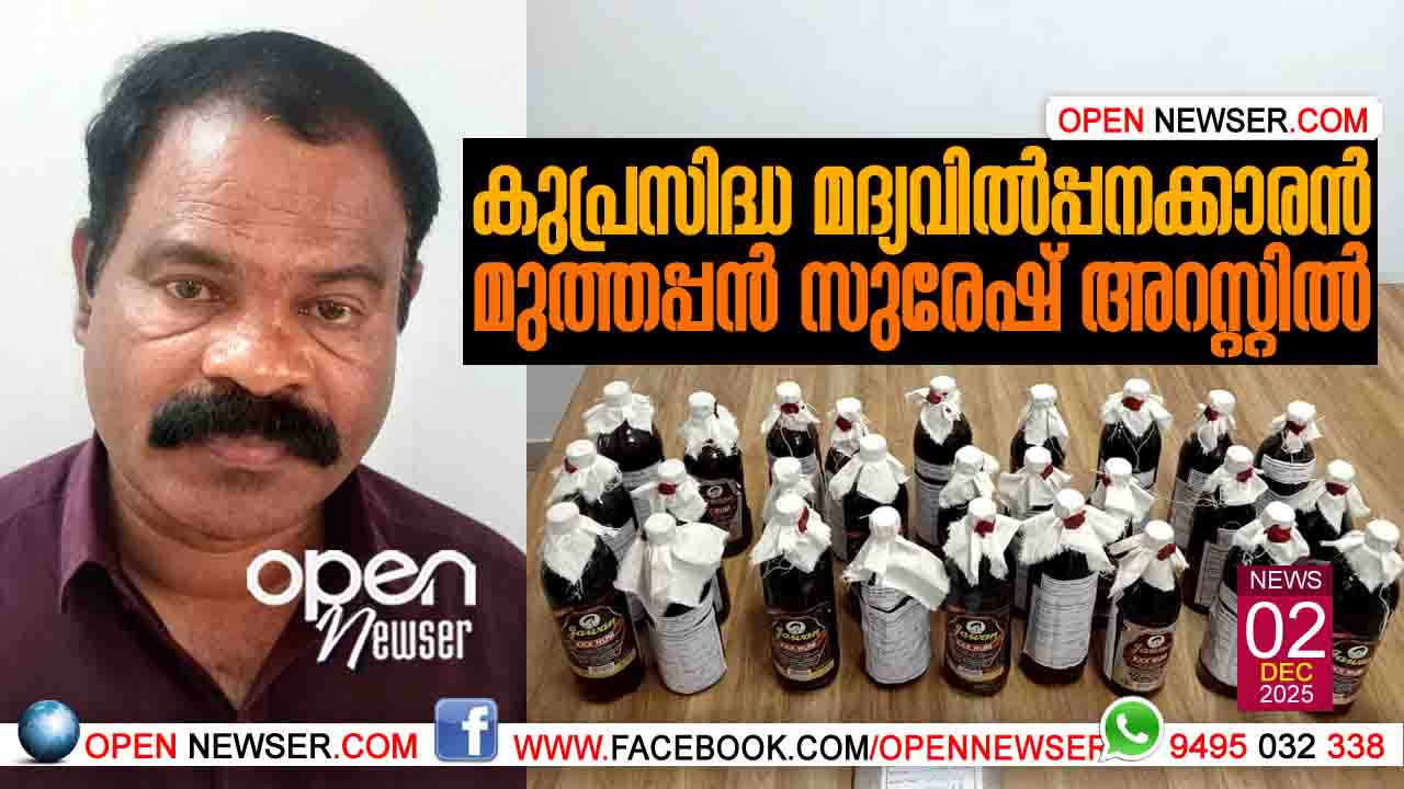 കുപ്രസിദ്ധ മദ്യവില്പ്പനക്കാരന് മുത്തപ്പന് സുരേഷ് അറസ്റ്റില്