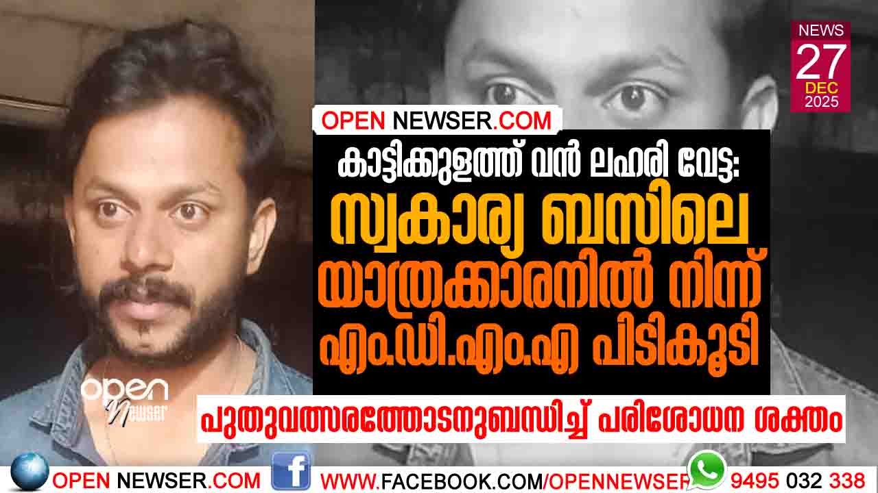 കാട്ടിക്കുളത്ത് വന് ലഹരി വേട്ട: സ്വകാര്യ ബസിലെ യാത്രക്കാരനില് നിന്ന് എം.ഡി.എം.എ പിടികൂടി; പുതുവത്സരത്തോടനുബന്ധിച്ച് പരിശോധന ശക്തം