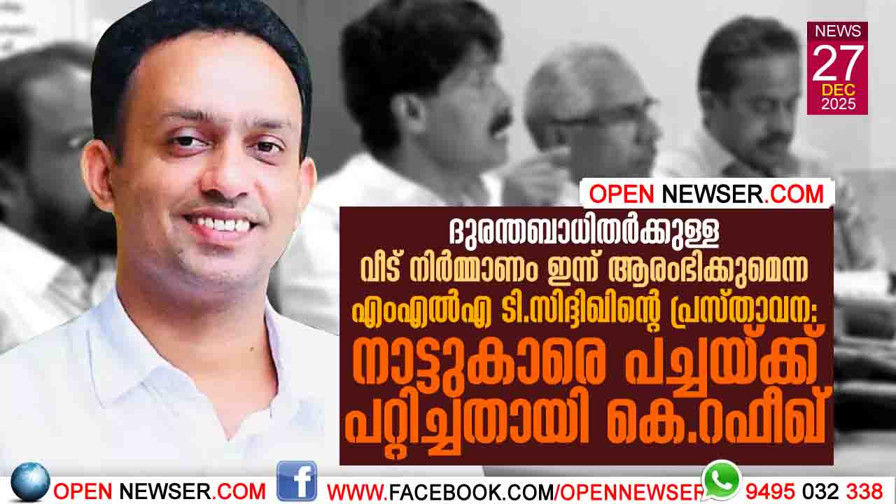 കല്പ്പറ്റ: ഡിസംബര് 28 ന് കോണ്ഗ്രസ് ജന്മദിനത്തില് മുണ്ടക്കൈ ചൂരല്മല ദുരന്തബാധിതര്ക്കായി കോണ്ഗ്രസ്സ് പ്രഖ്യാപിച്ച വീടുകളുടെ നിര്മ്മാണം ആരംഭിക്കുമെന്ന് തെരെഞ്ഞെടുപ്പിന് തൊട്ട് മുന്പ് കല്പ്പറ്റയില് വാര്ത്താ സമ്മേളനം നടത്തി പ്രഖ്യാപിച്ച കല്പ്പറ്റ എം എല് എയും കോണ്ഗ്രസ് നേതാവുമായ ടി സിദ്ധീഖിനെതിരെ സി പി ഐ എം ജില്ലാ സെക്രട്ടറി കെ.റഫീഖ് രംഗത്ത്. കോണ്ഗ്രസ് എംഎല്എ പറഞ്ഞ ആ ഡിസം. 28 ഇന്നാണെന്നും, എവിടെയാണ് കോണ്ഗ്രസ് വീടുകളുടെ നിര്മ്മാണ പ്രവര്ത്തനം ആരംഭിച്ചതെന്നും അദ്ദേഹം ചോദിക്കുന്നു. വീട് നിര്മ്മാണത്തിനായി സ്ഥലമെങ്കിലും കോണ്ഗ്രസ് കണ്ടെത്തിയോ എന്നും, കണ്ടെത്തിയെങ്കില് എവിടെയാണ് സ്ഥലമെന്ന് മാധ്യമങ്ങള്ക്ക് മുന്പില് കാണിക്കാന് തയ്യാറുണ്ടോയെന്നും റഫീഖ് ചോദിക്കുന്നു. യഥാര്ത്ഥത്തില് തെരെഞ്ഞെടുപ്പ് സമയം ജനങ്ങളുടെ കണ്ണില് പൊടിയിടാനാണ് ഡിസംബറില് വീട് നിര്മ്മാണമാരംഭിക്കുമെന്ന് പ്രഖ്യാപിച്ചതെന്നും, ജനങ്ങളെ പച്ചയ്ക്ക് പറ്റിക്കുകയയാണ് ടി സിദ്ധീഖും കോണ്ഗ്രസ് നേതൃത്വം ചെയ്തതെന്നും അദ്ദേഹം ഫെയ്സ് ബുക്ക് കുറിപ്പിലൂടെ വ്യക്തമാക്കുന്നു.