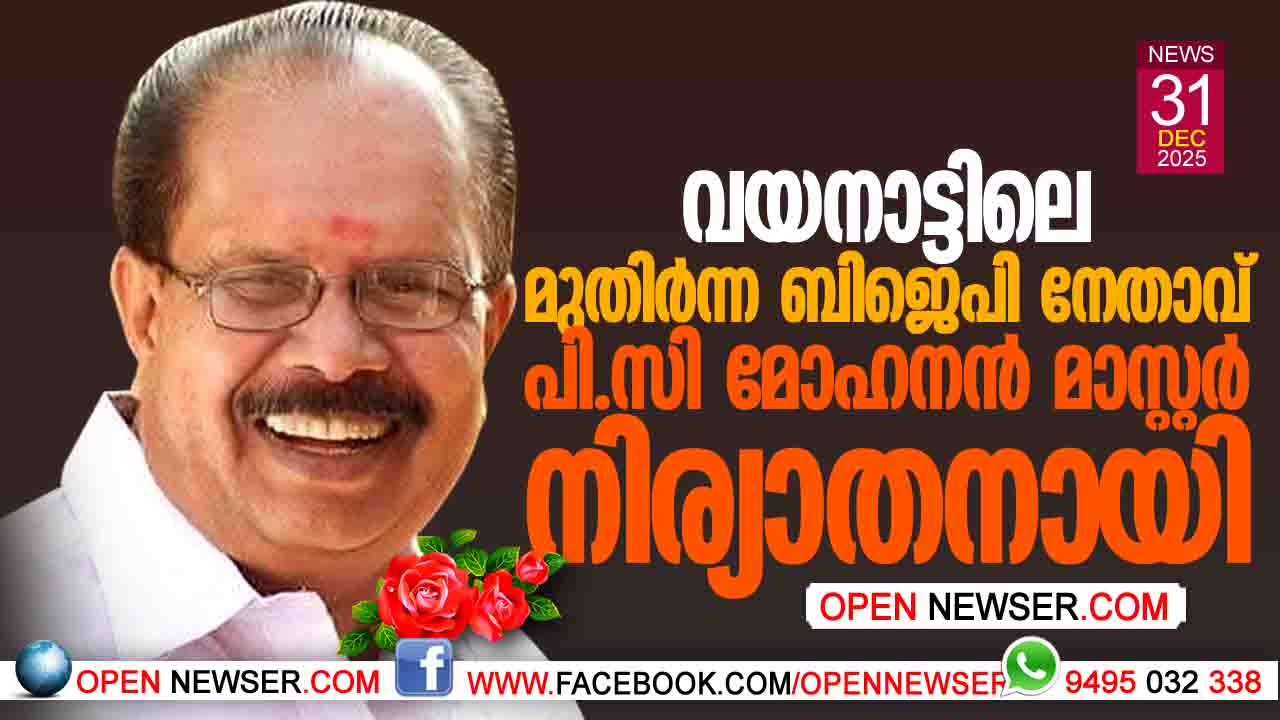 വയനാട്ടിലെ മുതിര്ന്ന ബിജെപി നേതാവ് പി.സി മോഹനന് മാസ്റ്റര് നിര്യാതനായി.