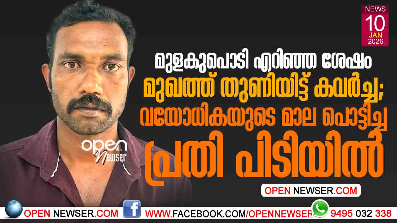 മുളകുപൊടി എറിഞ്ഞ ശേഷം മുഖത്ത് തുണിയിട്ട് കവര്ച്ചച വയോധികയുടെ മാല പൊട്ടിച്ച പ്രതി പിടിയില്