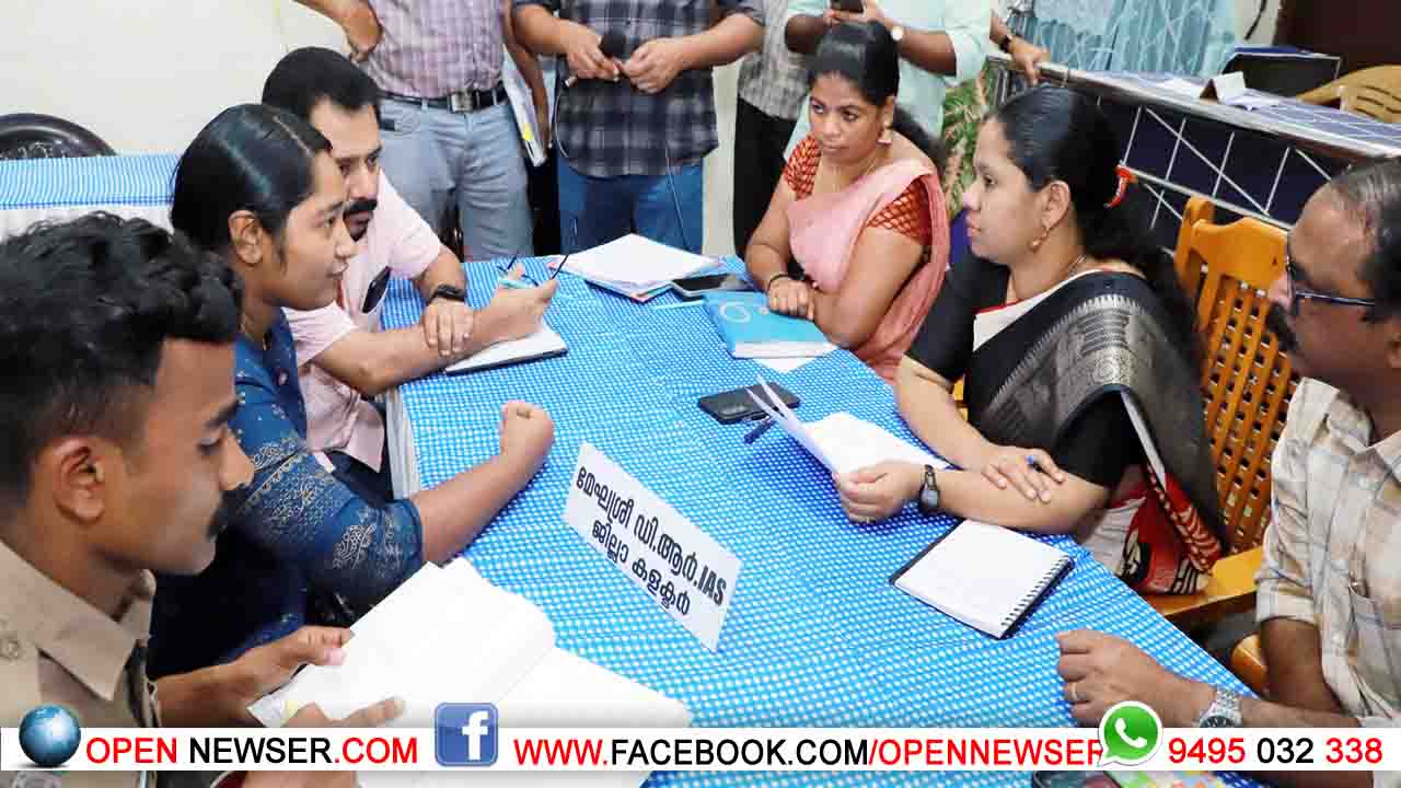 ജന പ്രതിനിധിയും നാട്ടുകാരും കളക്ടര്ക്ക് മുന്പില് പരാതിയുമായി എത്തിയത്. പരാതി പരിശോധിച്ച് വേണ്ട നടപടികള് സ്വീകരിക്കാന് കളക്ടര് പ്രത്യേക ടീമിനെ സജ്ജമാക്കാന് നിര്ദേശം നല്കി. ഗ്രാമ പഞ്ചായത്ത് സെക്രട്ടറി മുതല് രജിസ്ട്രാര് വരെയുള്ള ഉദ്യോഗസ്ഥര് പ്രത്യേക ടീമില് ഉണ്ടാകും. ഓരോ തലത്തിലും കൃത്യമായ റിപ്പോര്ട്ട് തയ്യാറാക്കി ബന്ധപ്പെട്ട ഉദ്യോഗസ്ഥര്ക്ക് നല്കണം. എല്ലാവര്ക്കും ഭൂമി എല്ലാ ഭൂമിക്കും രേഖ എല്ലാ സേവനങ്ങളും സ്മാര്ട്ട് എന്ന അപ്തവാക്യത്തില് എല്ലാവര്ക്കും സ്വന്തമായി ഭൂമി നില്ക്കുകയാണ് സര്ക്കാര് ലക്ഷ്യമെന്ന് എ. ഡി.എം എം. ജെ അഗസ്റ്റിന് പറഞ്ഞു.