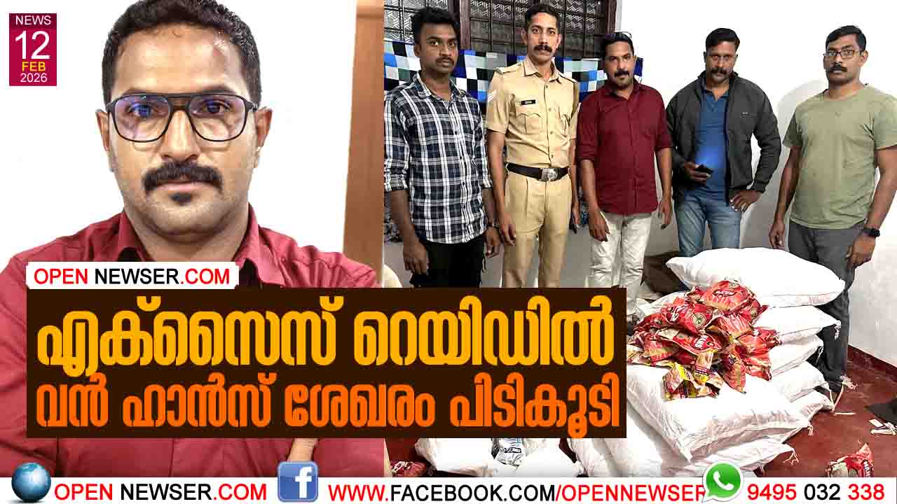 എക്സൈസ് റെയിഡില് വന് ഹാന്സ് ശേഖരം പിടികൂടി