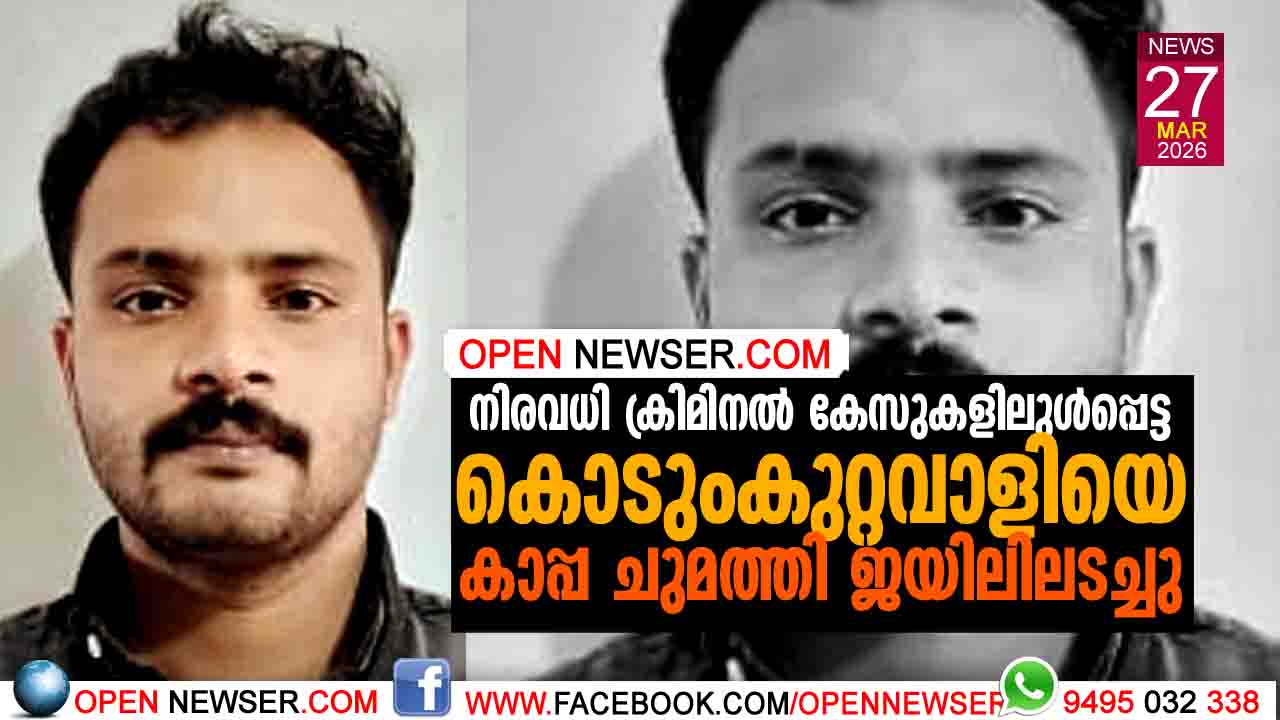 നിരവധി ക്രിമിനല് കേസുകളിലുള്പ്പെട്ട കൊടുംകുറ്റവാളിയെ കാപ്പ ചുമത്തി ജയിലിലടച്ചു.