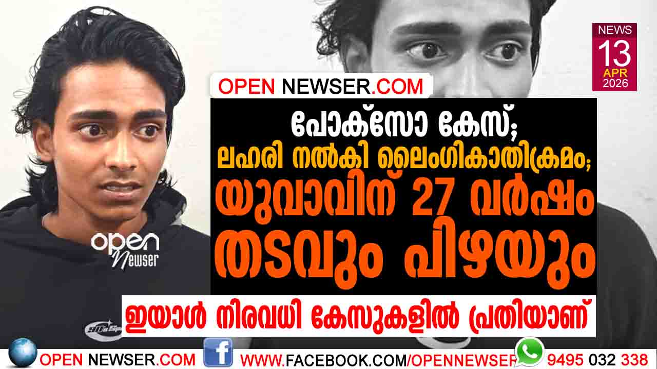 പോക്സോ കേസ് ; ലഹരി നല്കി ലൈംഗികാതിക്രമം നടത്തിയ യുവാവിന് 27 വര്ഷം തടവും പിഴയും; ഇയാള് നിരവധി കേസുകളില് പ്രതിയാണ്
