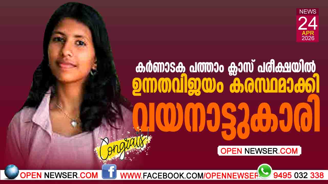 കര്ണാടക പത്താം ക്ലാസ് പരീക്ഷയില് ഉന്നതവിജയം കരസ്ഥമാക്കി വയനാട്ടുകാരി