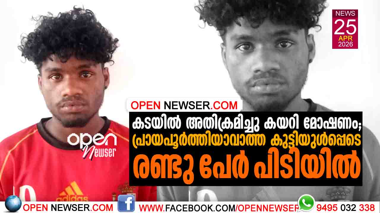 കടയില് അതിക്രമിച്ചു കയറി മോഷണം: പ്രായപൂര്ത്തിയാവാത്ത കുട്ടിയുള്പ്പെടെ രണ്ടു പേര് പിടിയില്