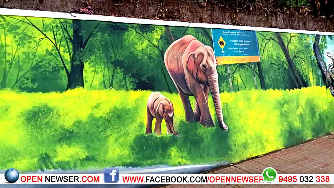 മാനന്തവാടി നഗരമതിലുകളില് കാനനഭംഗി വിരിയുന്നു; 'ആനത്താരകള്ക്കായി' വര്ണ്ണചിത്രങ്ങള്