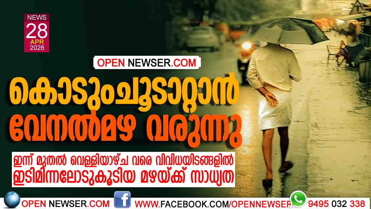 കൊടുംചൂടാറ്റാന് വേനല്മഴ വരുന്നു; ഇന്ന് മുതല് വെള്ളിയാഴ്ച വരെ വിവിധയിടങ്ങളില് ഇടിമിന്നലോടുകൂടിയ മഴയ്ക്ക് സാധ്യത