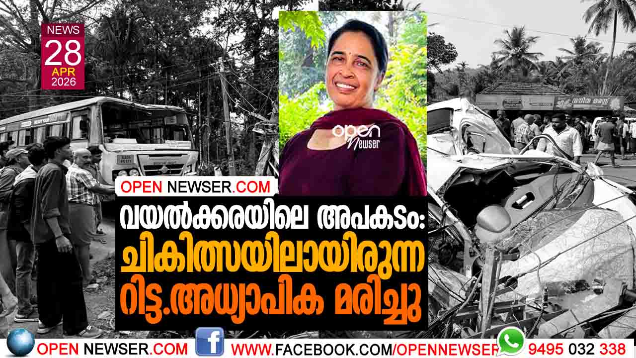 വയല്ക്കരയിലെ അപകടം: ചികിത്സയിലായിരുന്ന റിട്ട. അധ്യാപിക മരിച്ചു