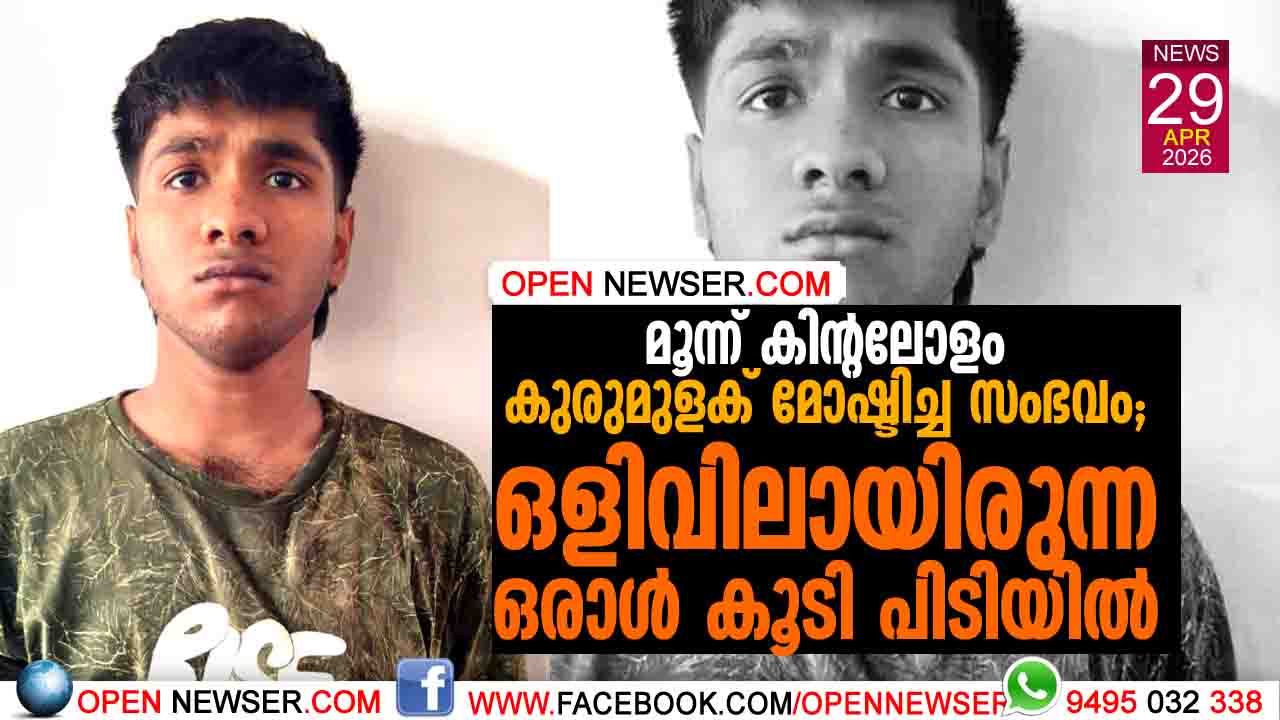 മൂന്ന് കിന്റലോളം കുരുമുളക് മോഷ്ടിച്ച സംഭവം; ഒളിവിലായിരുന്ന ഒരാള് കൂടി പിടിയില്; പിടിയിലായത് കളമശ്ശേരിയില് ഒളിവില് കഴിയവേ